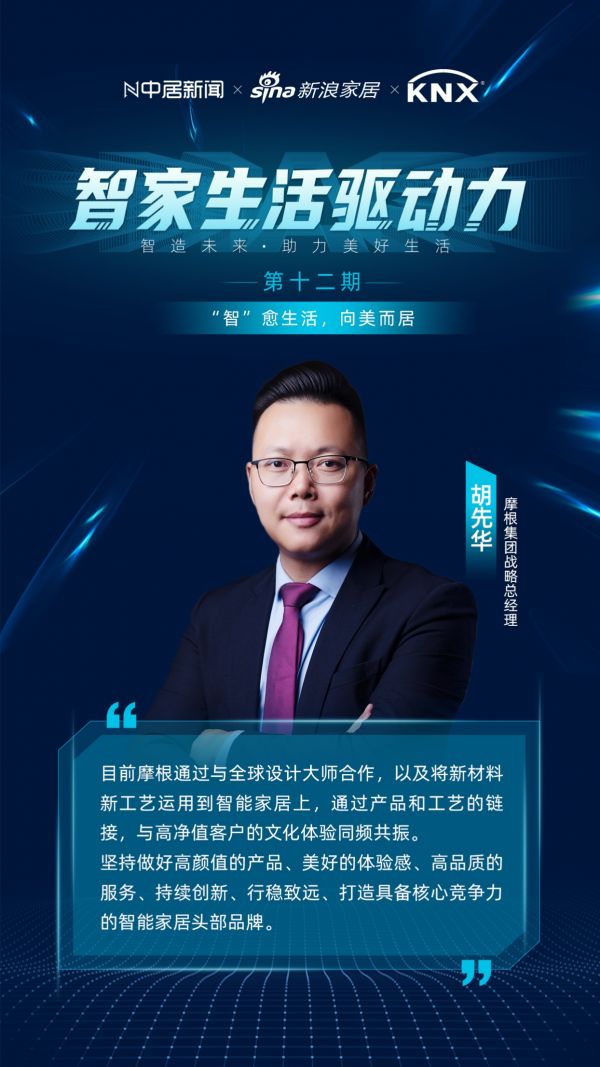 11月17日,智家生活驱动力系列论坛第十二期以《“智”愈生活,向美而居》为主题,摩根集团战略总经理胡先华、KNX协会何检与新浪家居智能家居行业主编梁佳,共同探讨伴随智能家居用户的认知和掌握程度提升,产品生态让用户体验的设计变得更加重要的当下,如何通过设计创新赢得高端市场消费者的青睐。