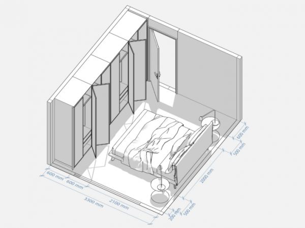 在普通的方正卧室格局下,一字型衣柜布局十分普遍,但在安装前期一定要提前规划清楚,需要重点注意以下内容:一是将房门设计在中间,门后留出60cm宽度,做整排衣柜,可最大化利用空间;二是如果卧室门开启后离衣柜较近,为了防止门撞到衣柜,可以在门后安装防撞门阻。三是如果需要在卧室安装投影幕布,那么在水电改造前,需要预先规划好电路位置,确保投影仪的线路可以顺利接入。