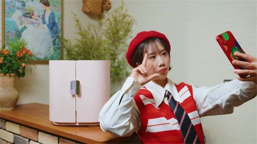 除了治愈系厨房,庄园里的Leader iCase小仙贝美妆冰箱,也成了很多人自拍合影的目标。小巧的身材和粉色的外观,让冰箱与庄园内的清新风格相互呼应,就像一副精致的首饰盒摆在桌面。而对洪芷瑄来说,小仙贝冰箱还是她的护肤助手,不仅能减缓护肤品活性成分流失速度,还能通过手机APP检测肤质,给她提出合理的护肤和膳食建议。