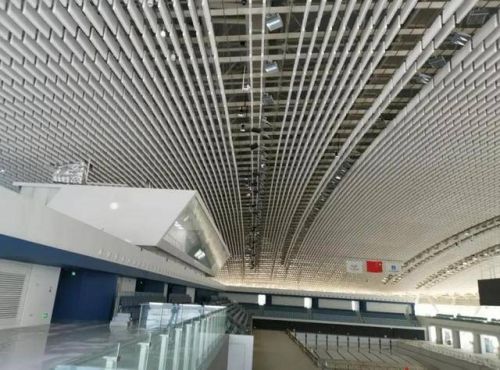 晋江第二体育中心建筑声学项目设计原则:此次项目中由于体育馆、游泳馆和训练馆三大场馆的比赛大厅容积巨大,无可避免的产生声音混响,但除顶棚外可以安装吸声材料的位置少之又少,作为赛事场馆,势必对场内声学要求极为严苛,所以仅依靠在比赛大厅本身的界面上布置吸声材料难以达到声学设计需求。阿贝龙设计团队根据体育馆设计的总体要求(装修效果、吸声性能和投资限额等)选择和配置吸声结构,以在网架下弦悬挂片式空间吸声体- LongSing(龙之吟)吸声垂片为设计方案,展开设计施工计划。