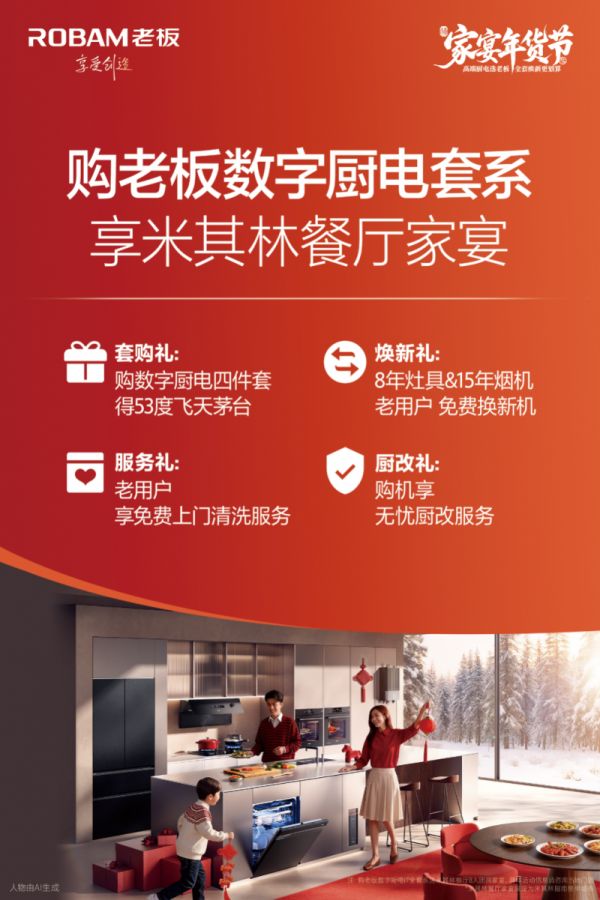 结语:一顿安心的年夜饭,是给家人最好的礼物。即刻行动,检查您家灶具的“年龄”,别让安全隐患成为团圆的缺口。即日起至2月28日,亲临老板电器线下门店,即可验证资格,解锁专属焕新礼遇,让您的厨房安全与烹饪体验,一同迈入新阶段。老板电器“家宴年货节”,邀您焕新厨电,乐享团圆!