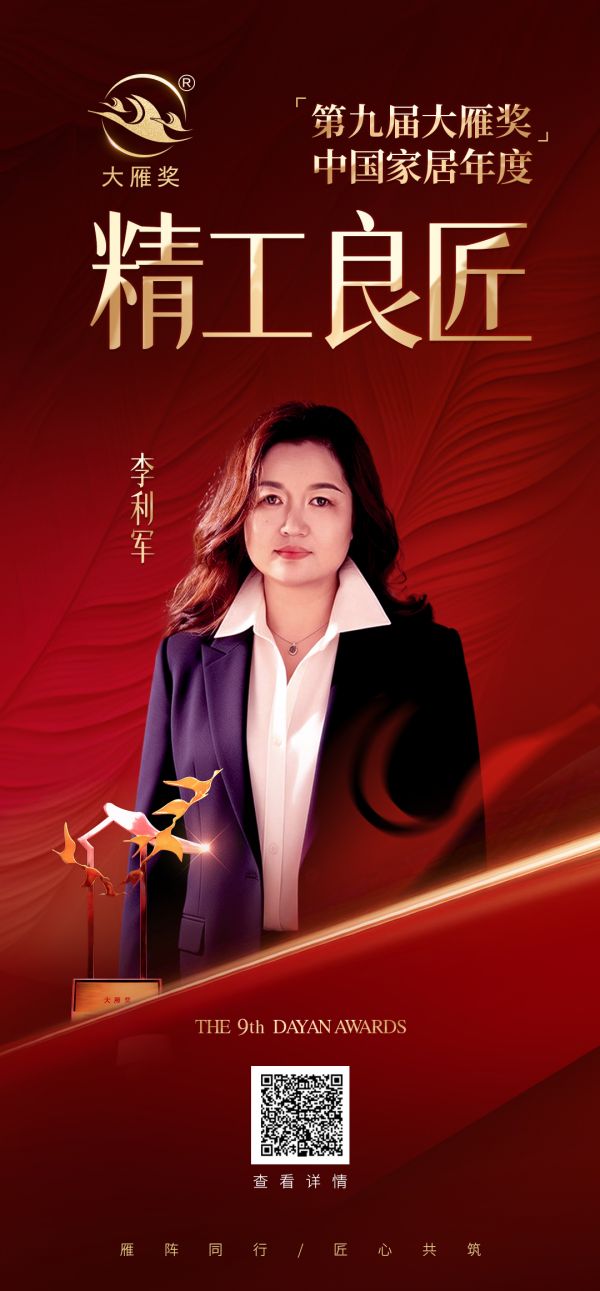 喜报!李利军女士荣获「第九届大雁奖·中国家居年度精工良匠」奖项
