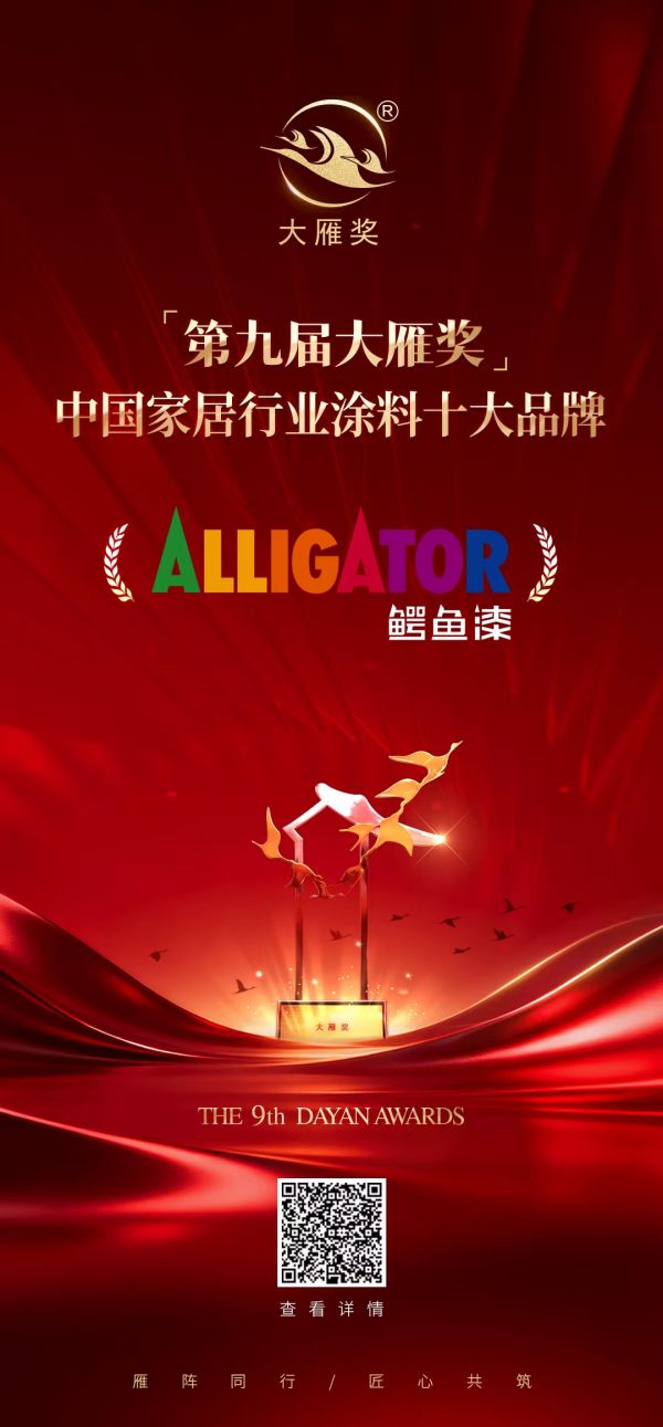 喜报!鳄鱼漆荣膺「第九届大雁奖·中国家居行业涂料行业十大品牌」奖项