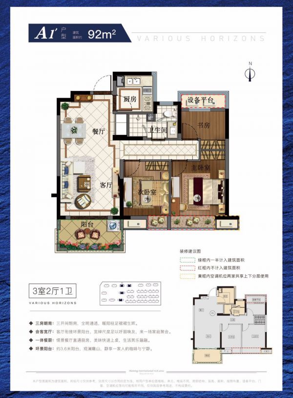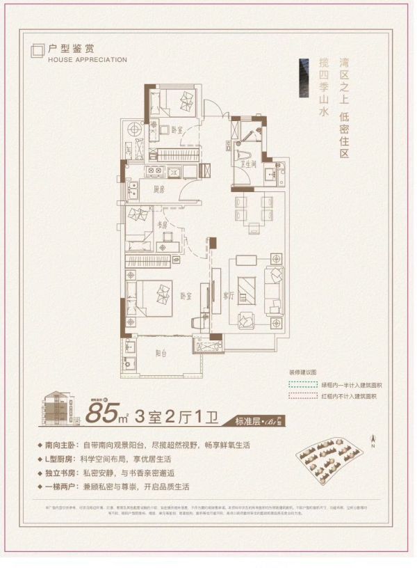 2、双景观房:本小区北边一路之隔国际高尔夫俱乐部、正南钱塘江 、完全做到(北观高尔夫,南临钱塘江 一线景观房)!