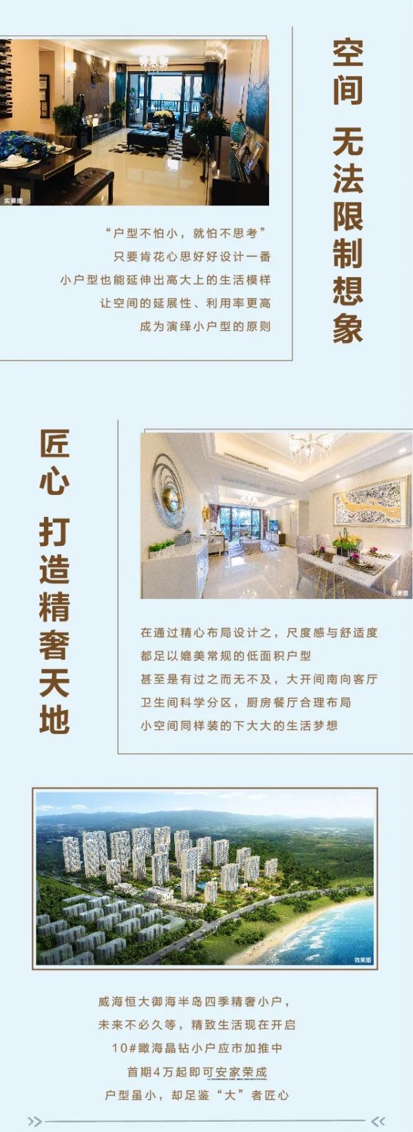 威海恒大御海半岛|10#晶钻小户型,应市加推